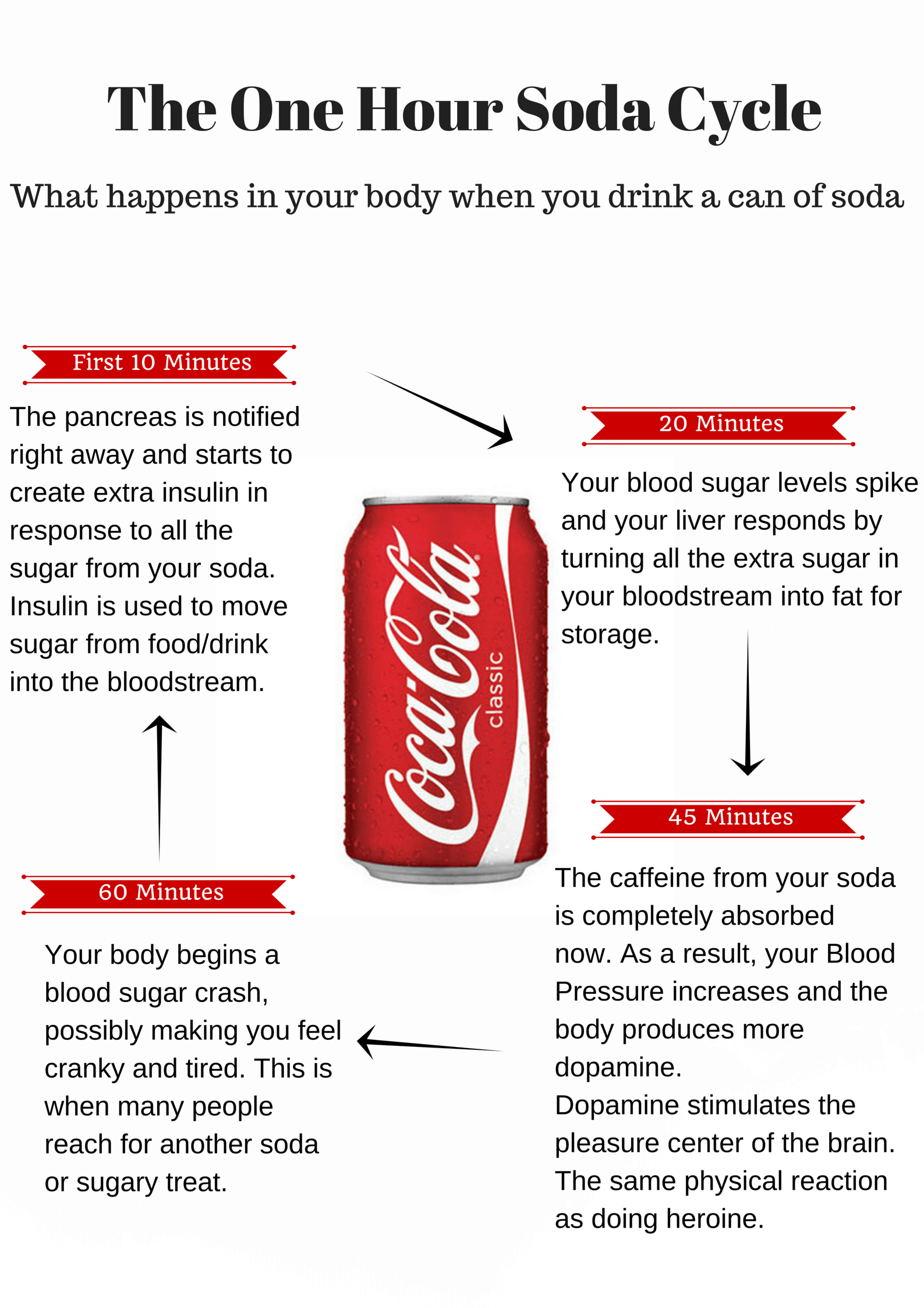 - High Fructose Corn Syrup (the sugar found in soda) has been associated with metabolic syndrome, which is a condition that leads to Heart Disease and Diabetes