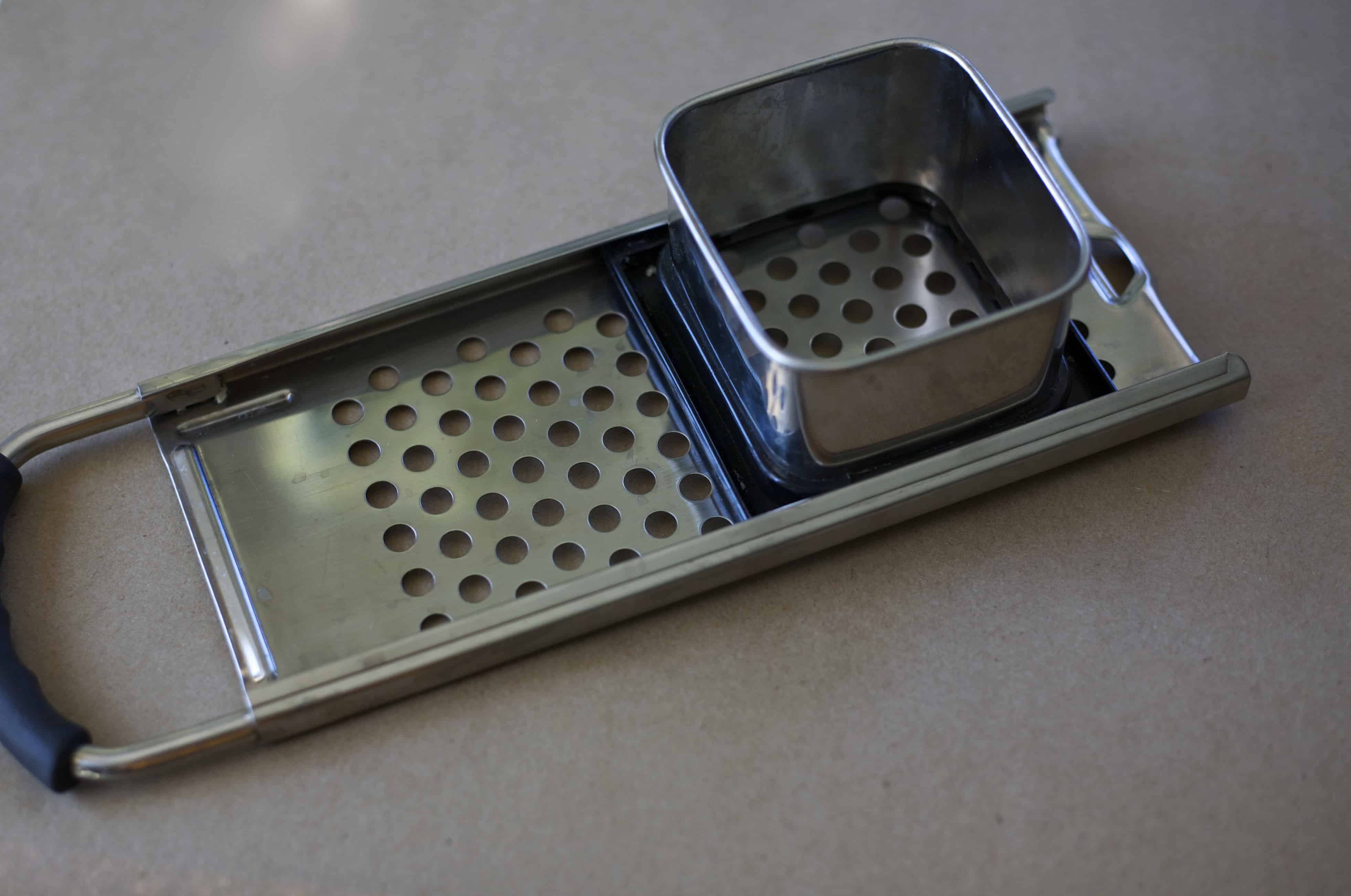 One of the reasons I like spaetzle so much is that it’s so simple to make. Just combine the 4 ingredients together to for the dough, boil a pot of water, slide the dough through a spaetzle maker over the water and viola! A spaetzle maker looks like a flat cheese grater with a small square piece on top that slides back and forth. You put the dough in the square and as you slide it across the “grater” tiny noodles fall thru into the boiling water. If you don’t have a spaetzle maker, you can press the dough through a colander and it works just as well.